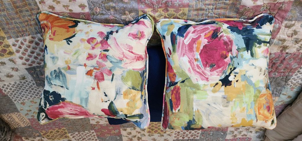 Matching floral pillows for same client. Made from scrapes with piping & polyester filling