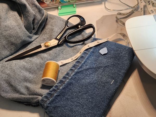 Hemming Jeans my way. mark . cut, sew, iron, happy customer. Done in 1 day
