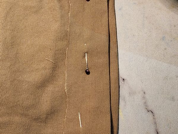 Hemming Carhart Jeans cut & pinned ready to sew the hem