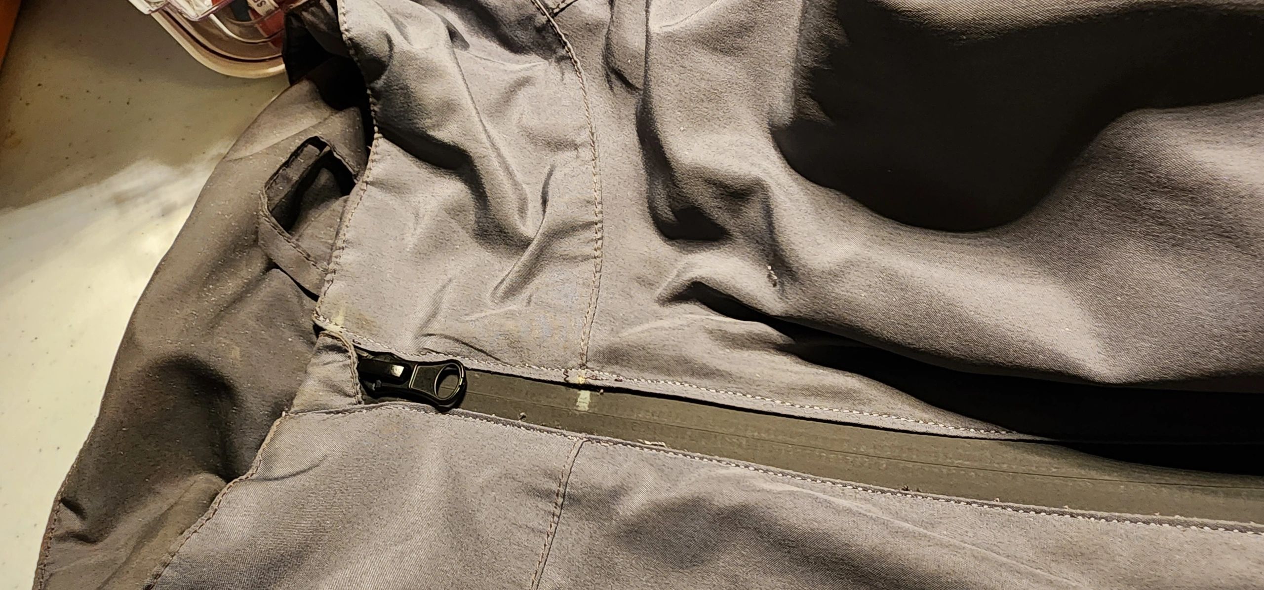 Inside view of zipper in jacket. Jacket was a polyester Kevlar water proof type material.
