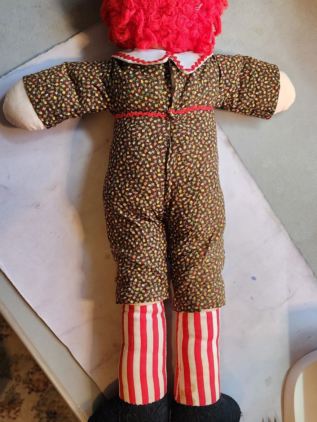 Raggedy Andy back side. All better now and in one piece again, not 5....